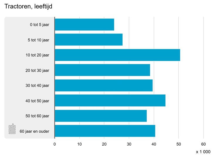 Op 1 januari 2025 telde Nederland 681 duizend landbouwvoertuigen met een kenteken. Onder landbouwvoertuigen vallen 303.000 trekkers, 256.000 aanhangers en 122.000 mobiele machines Trekkers zijn met een gemiddelde leeftijd van 33 jaar relatief oud. Dit meldt het CBS op basis van nieuwe cijfers over het motorvoertuigenpark.